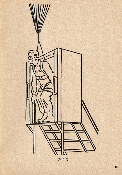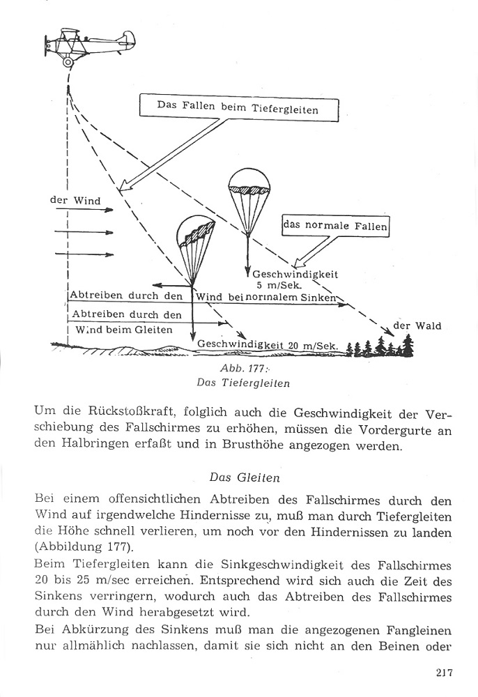 Bild 11/12/13/15 – Auszüge aus dem Lehrheft der GST „Methodische Anleitung für die Ausbildung im Fallschirmsport“.