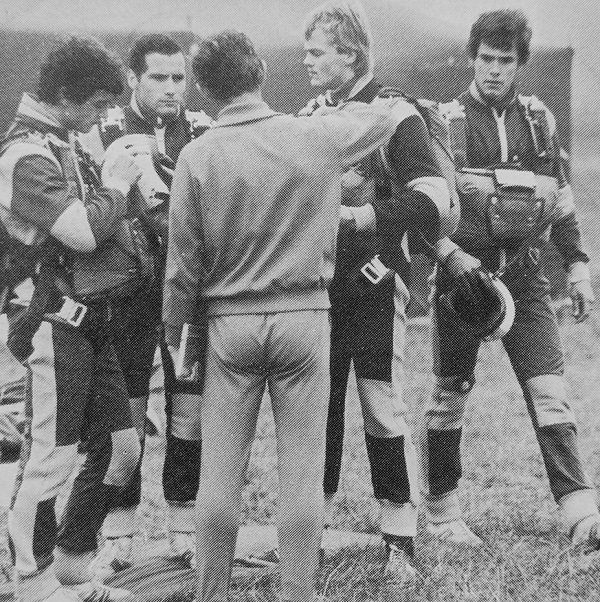 Bild 20 – Letzte Hinweise vom Trainer Helmut Schulz an seine Schützlinge Lutz Hofmann, Berthold Hennicke, Karsten Dietrich und Frank Stiehler (v.l.n.r.)