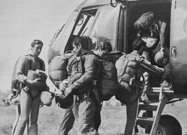 Bild 24 – Einstieg in den Hubschrauber Mi-8, der als Absetzmittel in Szolnok diente.
