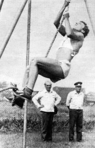Bild 26 – Der Karl-Marx-Städter Achim Schwabe führte unter seiner Fallschirmkappe Turmübungen durch.