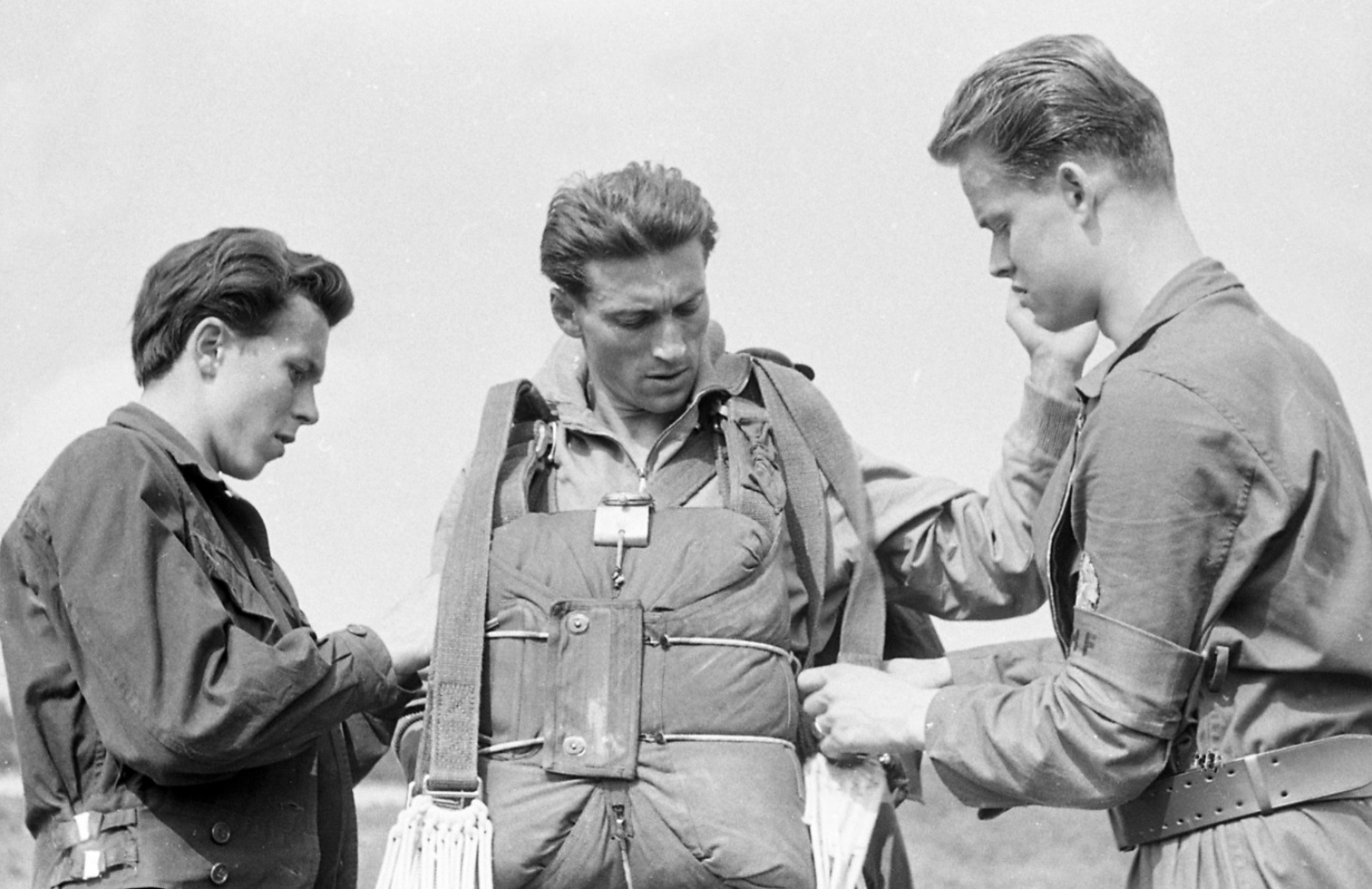 Und da war da noch der Fallschirmwart aus Zwickau. Wenn man Vincent Przybycin vor sich sieht, denkt man mehr an das Grobe, tatsächlich war er auch bei allen Späßen dabei und Initiator dazu. Zurückgezogen malte er Bilder und versuchte sich an der Verbesserung der Fallschirmtechnik. Einzigartig seine Idee zur Verwendung einer elastischen Verbindungsleine. Beim Packvorgang wurde bisher der Verzögerungssack mit dem Hilfsschirm lose über die Fallschirmkappen gezogen und flatterte nach der Fallschirmöffnung getrennt vom Springer zu Boden. Manchmal weit abgetrieben oder sogar unauffindbar verschwunden. Die elastische Verbindungsleine hielt die Verbindung zur geöffneten Fallschirmkappe, wurde patentiert, und ist seitdem weltweit verbreitet.