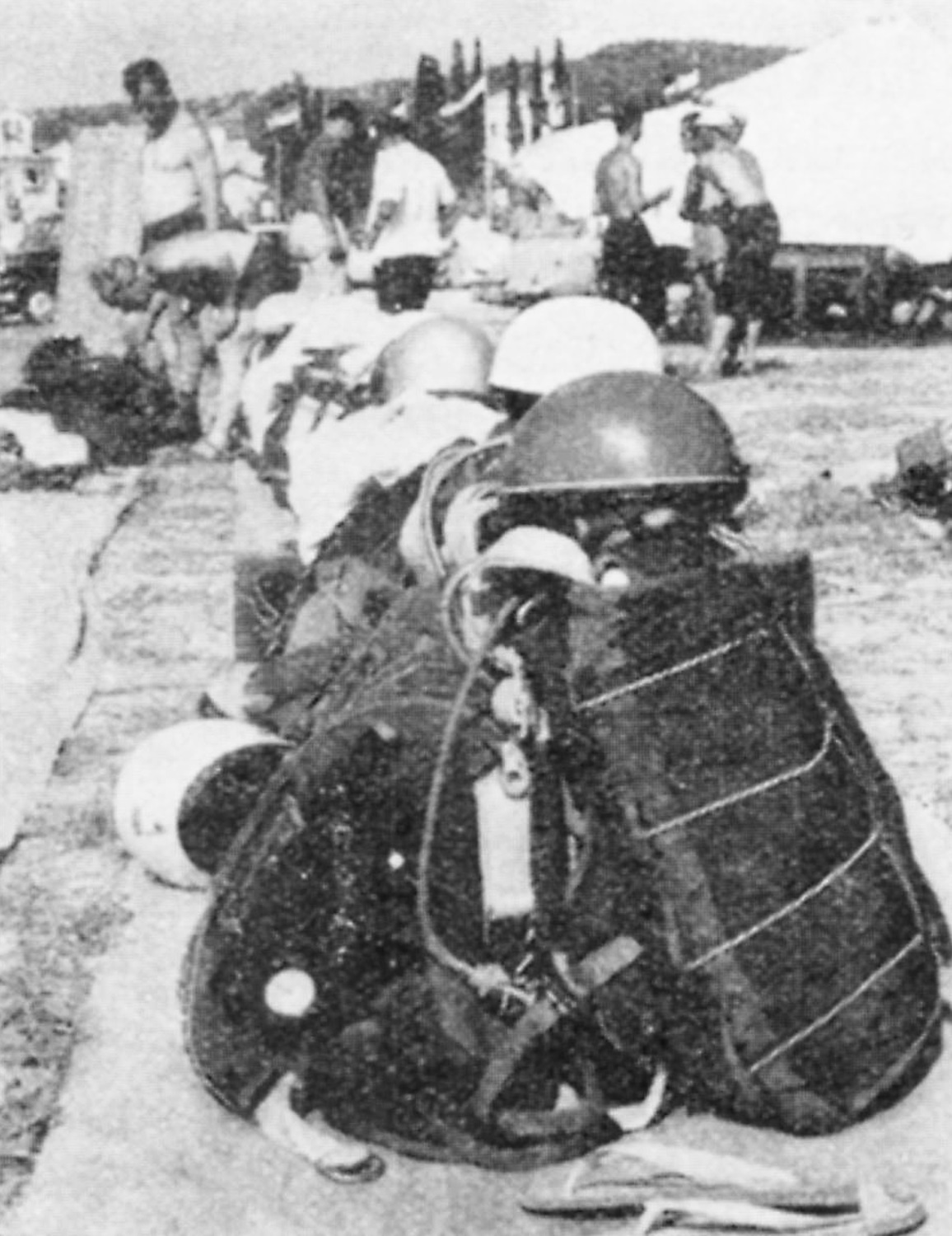 Um beim Zielspringen den Absetzpunkt noch genauer bestimmen zu können, hatte zeitweilig sogar der Rechenschieber Einzug gehalten. Als Vorteil beim Figurenspringen konnten die Rettungsfallschirme, dank neuer Materialien, nicht nur in kleinere Verpackungen gedrückt werden, sie erhielten auch eine quergelagerte Anbringung auf der Brustseite des Springers. Neben Kappmesser, Höhenauslöser, Brille und Stoppuhr, rüsteten sich die Springer bei Höhensprüngen zudem mit kleinen Höhenmessern aus. Der Sprunghelm war bei immer mehr Springern zu sehen. In der DDR dominierte noch die AVANTI-Kappe. Um das Figurenspringen trainieren zu können und Wettkämpfe zu ermöglichen, stellte die NVA dem Fallschirmsport TSK-Beobachtungsfernrohre zur Verfügung. Die Versuche, Fernrohre aus Jena einzusetzen blieben ohne Erfolg, sie hatten zwar eine sehr gute Optik, konnten aber nicht in eine Winkelposition gebracht werden.