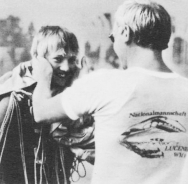 Dann mussten alle Teilnehmer ihr Können beim Treffen der kleinen Zielscheibe von nur fünf Zentimeter im Durchmesser demonstrieren. Es war für den Zuschauer herrliches Sommerwetter, aber für die Springer ein harter Kampf gegen die Erscheinungen der Thermik, mit Flauten und plötzlich heftigen Böen. In der Mittagszeit war es am schwierigsten. Nach den zehn Runden war es Cheryl Stearns aus den USA, die mit 0,08 m den Weltmeistertitel für ihr Land holte. Ihr folgte mit 0,09 m Jelena Burkowa aus der UdSSR und wer hätte es erwartet, gewann die jüngste der DDR-Frauen, Heike Glaw, mit 0,15 m die Bronzemedaille. Irina Walkhoff erreichte den fünften Rang und Sonja Schneider wurde Achte. Barbara Harzbecker hatte bis zum achten Durchgang noch geführt, aber dann kam die unbarmherzige Böe und löste die goldenen Aussichten in Tränen auf. Im Wettbewerb der Männer zeigte sich nach sieben Runden viel Licht am Horizont. Bernd Wiesner lag mit 0,00 m vorn, Klaus-Jürgen Böhme und Ronald Eilenstein hatten auch noch gute Positionen. In der achten und neunten Runde markierten alle fünf DDR-Springer die Nullscheibe, nur Bernd Wiesner trat einen Zentimeter danebebn. Sein Vorsprung betrug nur noch zwei Zentimeter. Alle standen am Zielkreis, um Zeuge der Entscheidung zu werden, aber das Wetter machte einen Strich durch die Rechnung. Starker Wind kam auf und man vertagte das Spektakel auf dem nächsten Tag. Bernd Wiesner sprang als erster der Goldkandidaten und traf die Scheibe souverän. Jubel und viele Glückwünsche, zumal er auch noch den Weltmeistertitel in der Gesamtwertung gewann. Nikolai Uschmajew aus der UdSSR musste noch einen Zentimeter zuzählen und wurde Silbermedaillengewinner. Klaus-Jürgen Böhme hatte es in der Hand und mit einer weiteren „Null“ konnte er die Bronzemedaille entgegennehmen.