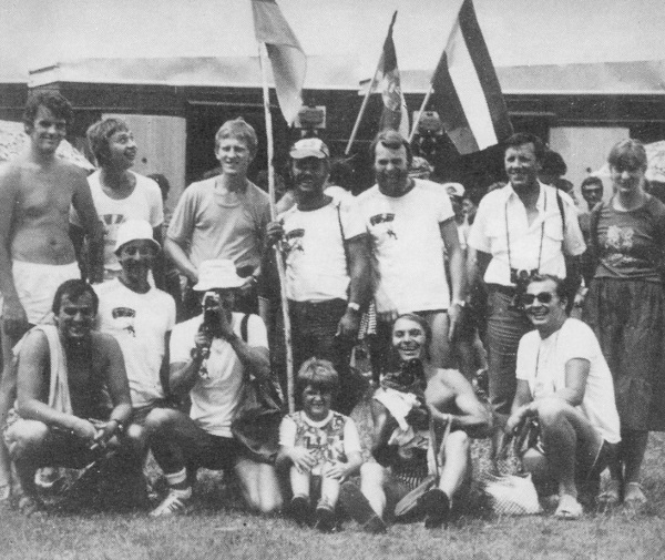 Dann kam das bei den DDR-Sportlern so beliebte Gruppenspringen. Nach drei Runden sahen die Springerinnen aus der Deutschen Demokratischen Republik schon wie die sicheren Sieger aus. Im letzten Durchgang trafen sie jedoch die grausamen Windböen und plötzlichen Flauten. Irina Walkhoff drohte eine Außenlandung. Mit artistischem Unterschwung und Hohlkreuz schaffte sie noch 3,18 m, das brachte nur den achten Platz. Die Goldmedaille ging an die Bulgarinnen, Kanada gewann Silber und die CSSR konnte sich über Bronze freuen. Bei den Männern sammelten sich die Zentimeter. Die Siegermannschaft Frankreich hatte nach den vier Durchgängen 0,22 m auf dem Konto, die BRD holte mit 0,28 m Silber, Australien Bronze mit 0,29 m und die DDR setzte mit 0,31 m den Zentimeterabstand fort.
