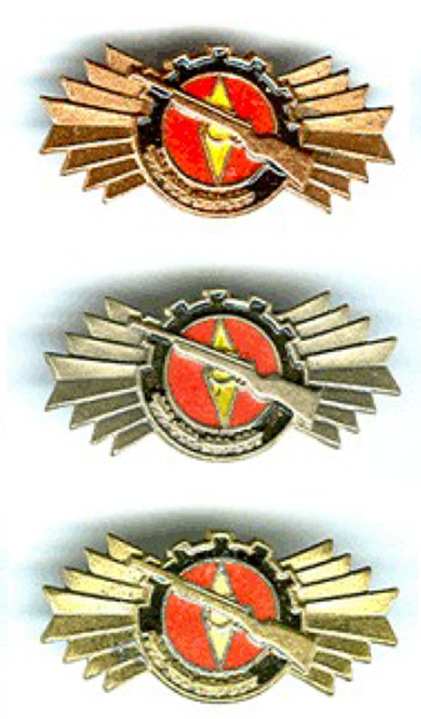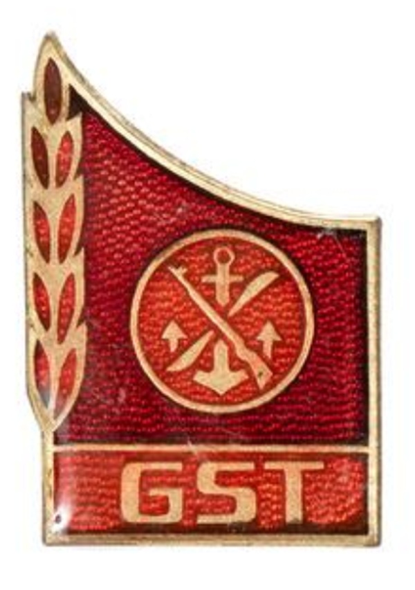 Abzeichen der GST (von links nach rechts)