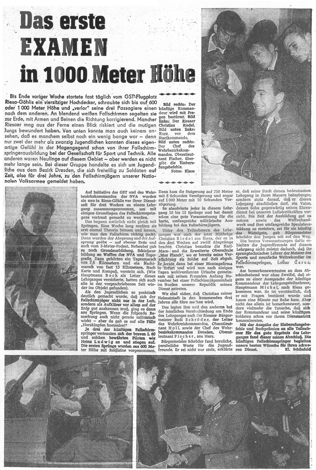Bild 8 – Zeitungsartikel über einen GST-Lehrgang für Freiwillige der NVA-Fallschirmjäger.