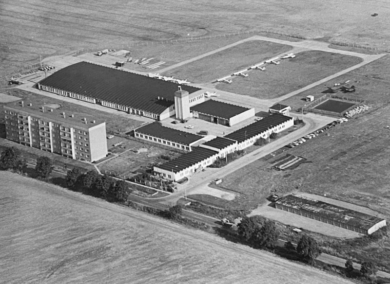 Bild 11 – Fallschirmsprungausbildung in Halle-Oppin. Am unteren Bildrand ist die Fallschirmsprungschule zu sehen.
