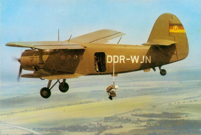 Schon ein Jahr später kamen zwei Flugzeuge vom Typ AN-2 (DM-WCY; DM-WCZ) und weitere 150 Sprungfallschirme vom Typ PD-47 sowie 50 Rettungsfallschirme vom Typ PS-41a hinzu. An den damaligen Bezirksaeroclubs wurden Planstellen für hauptamtliche Fallschirmsprunginstrukteure und Fallschirmwarte geschaffen.