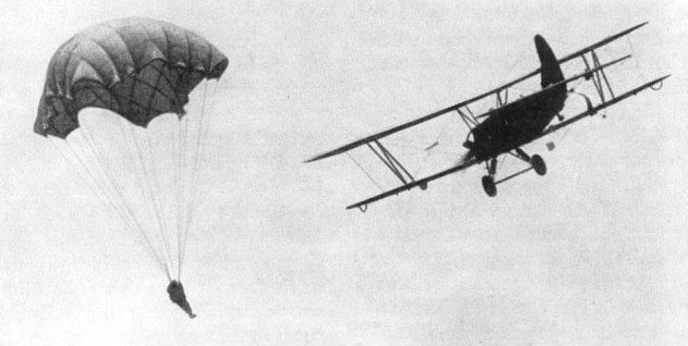 Jede Geschichte hat ihre Vorgeschichte. Gehen wir einfach zum Anfang meiner Geschichte zurück. Irgendwie beginnt diese schon im Sommer 1956. Ich war 16 Jahre alt, ging in Kühlungsborn zur Oberschule, war Flugmodellbauer und in Anklam fanden die DDR- Meisterschaften statt. Welchen der hinteren Plätze ich damals belegte, weiß ich heute nicht mehr. Woran ich mich aber noch gut erinnere, ist meine erste (allerdings flüchtige) Berührung mit dem Fallschirmsport. Und das kam so: Im Rahmenprogramm wollte sich ein Wahnsinniger mit dem Fallschirm aus einem Flugzeug namens PO- 2 (gesprochen PODWA) stürzen (Bild 1). (Dieser Wahnsinnige war Udo Varchmin, von dem später noch die Rede sein wird).