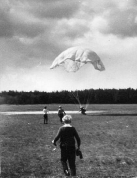 Von Schönhagen aus war ich übrigens mit dem Klaus Tischer noch nach Friedersdorf gefahren, dem „Stammplatz“ der Berliner Springer. Wir klemmten uns zu zweit mit vollem Gepäck und doppelter (angelegter) Sprungausrüstung (PD-47 und Ersatzgerät) auf seine alte NSU (Vorkriegs- Motorrad 200cm³) und los ging‘s. Irgendwie kamen wir in Friedersdorf in der Nähe von Königswusterhausen an und ich machte dort noch ein paar schöne Sprünge.