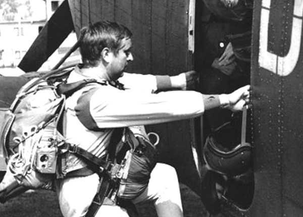 Die Grundausbildung umfasste damals 5 Strippensprünge. Mit dem 10. Hüpfer begann die Freifallausbildung, erst mal mit 5X „Kopflage“ 5 und 10“ d.h.: Arme ran und Beine auseinander. Danach kamen die sogenannten Stilsprünge worunter die Normallage zu verstehen ist. Bei den ersten Verzögerungssprüngen musste die Sekunden noch abgezählt werden. Eine Stoppuhr gab es erst später. Die Sprunghöhen waren der gewünschten Freifallzeit angepasst, die Öffnungshöhe lag bei 600m (800m=5“, 1000m=10“, 2000m=30“ usw.). Gesprungen wurde mit KAP-3 (s. auch Bild 8).