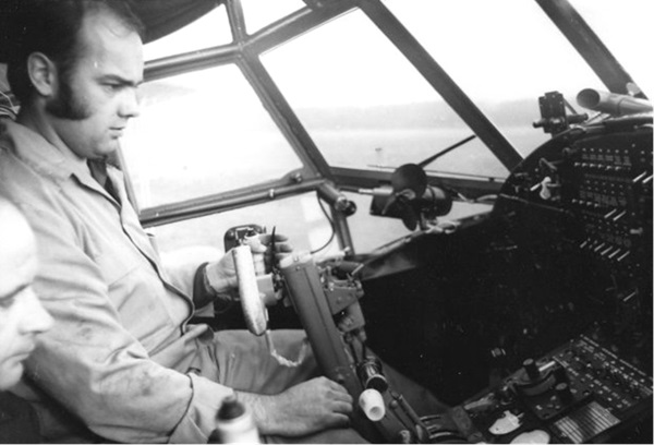 hier Peter Wiedemann im Cockpit der Anna, dem braven Mädchen. Links guckt Willi Krause wie ein Schwein ins Getriebe.