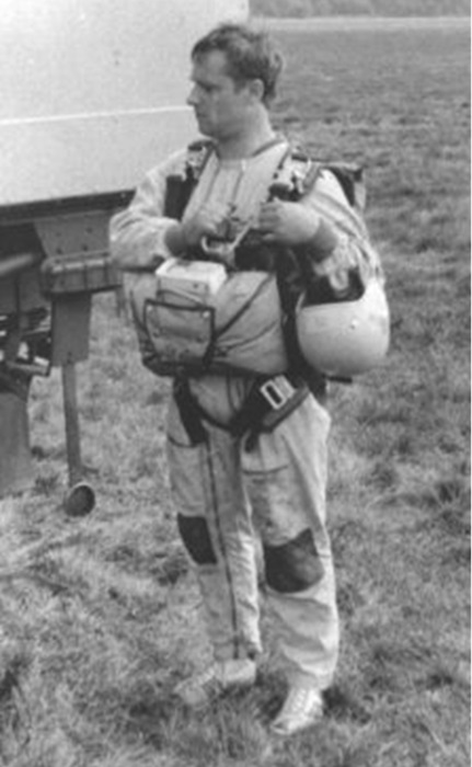 Bild 37: Mein (vorerst letzter) Sprung. Das bin ich am 27.07.1979 vor meinem 543. Sprung unter dem Banner der GST.