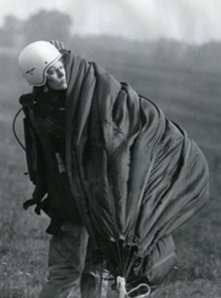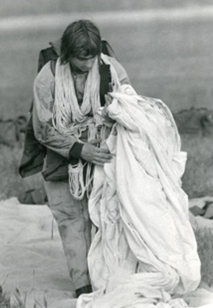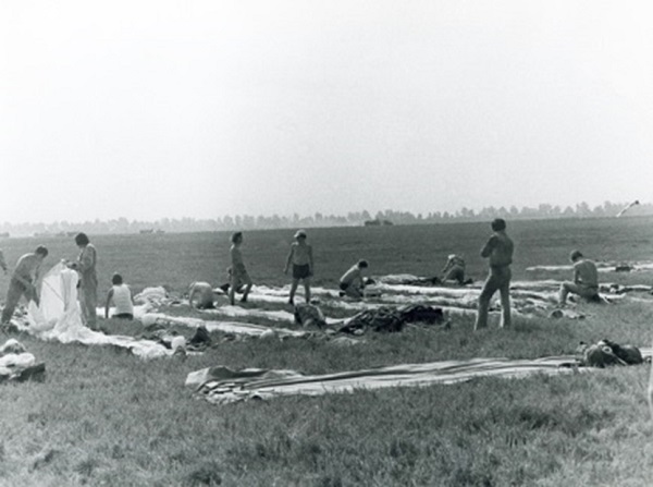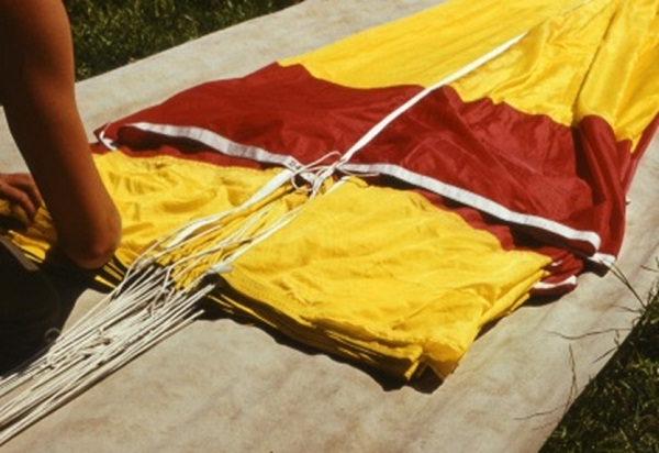 Bild 24 / 25 – Aufnehmen des Schirmes nach der Landung und Ablegen auf die Packplane.