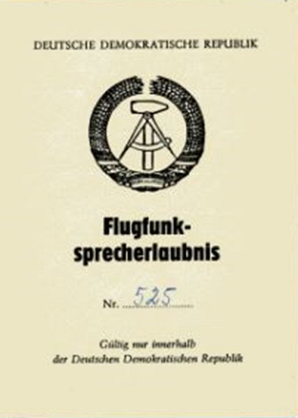 Wir hatten eine transportable Funkstation mit auf dem Platz, mit der sich der Flugleiter per Sprechfunk mit dem Piloten verständigte. Dazu war später die Flugfunksprecherlaubnis nachzuweisen (Nr. 525 per 18.03.1968 ausgestellt vom Ministerium für Post- und Fernmeldewesen). Diese musste aller 5 Jahre verlängert werden.