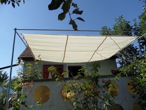 Bild 16 / 17 – Ein PD-47 als Sonnensegel in Bulgarien (1983) und im Kleingarten (2012).