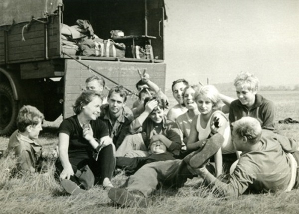 Oberinstrukteur Werner Schmidt machte anfangs auch mit uns in „geistig-kulturelles Leben“. Wir saßen abends auf der noch warmen Betonplatte vor der Segelflughalle, er holte seine Gitarre raus und wir lernten Lieder: Natürlich das Fallschirmspringerlied und Arbeiter- und Kampflieder, aber auch Volkslieder. Und wir haben unsere eigenen Lieder geschaffen: das Steigerlied und die Festung Königstein – mit abgewandelten fallschirmsportlichen Text.