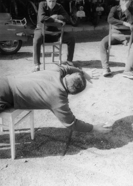Die Truppe im Karree am Fahnenmast antreten lassen – alle in der grauen GST-Uniform mit Käppi. Ich hatte mein Käppi quer aufgesetzt – wie ein priesterliches Barett – und habe eine Messe zelebriert mit einer Predigt, die ich als Mönch auf der Faschingsveranstaltung von Robotron gehalten hatte. Etwas abgewandelt geißelte ich alle Sünden im Fallschirmsport und wetterte gegen die dann vor mir knienden Sünder. Die Meute hat sich bald zerkugelt vor Spaß und Blödsinn. Dann haben wir unter Trommelwirbel auf einer Blechtonne einen Putzlappen mit aufgemalten Totenschädel und gekreuzten Knochen am Fahnenmast hochgezogen. FLUPLAMA! Und die Hauptamtlichen guckten pikiert zu. Das hat mir hinterher einen mächtigen Anschiss vom BAZ-Leiter Manfred Reiß eingebracht – wegen Verunglimpfung der GST-Uniform und eines GST-Fahnenmastes usw.