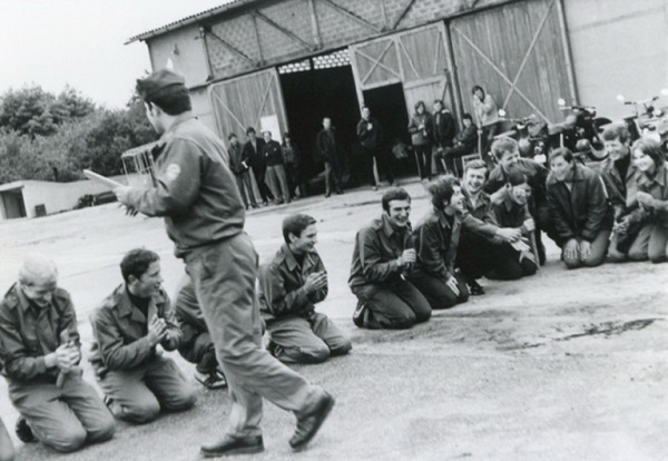 Schlechtes Wetter und Flugsperre – manchmal tagelang: Was sollte man mit einem Wochenlehrgang tun? Irgendwie mussten die Truppen sinnvoll beschäftigt werden, sonst sank die Stimmung noch mehr und die Disziplin litt darunter. Solange noch Fallschirme zu packen waren, war das kein Problem für die Betroffenen. Dann wurde bodenpraktische Ausbildung ohne Ende gemacht: für die Anfänger Absprungübungen am Sprungpodest und an der Maschine, Landerolle und Schleifübungen, Steuerübungen am Pendelgerüst und Vorbereitung auf eine Wasserlandung.