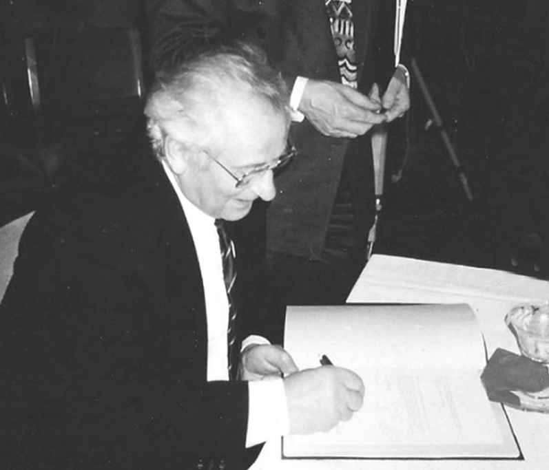 Bild 11 – Weitergabe der übergebenen Flugzeuge an die Präsidenten der Bundesländer – hier Heinz Krieger, der den Vertrag für den LV Mecklenburg-Vorpommern unterzeichnet.