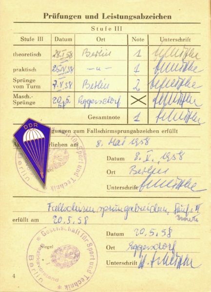 Die Übung b.), c.) und d.) mussten auf zentralen Sprunglehrgängen der GST, Klassifikationswettbewerben, bei Bezirks- oder DDR-Wettkämpfen erfüllt werden.