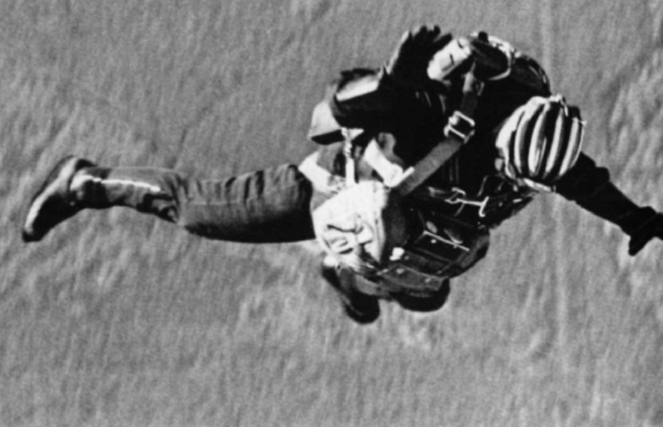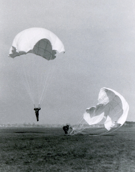 Bild 9 – einer der drei geforderten Sprünge für das Fallschirmsprungabzeichen war die sogenannte zusätzliche Öffnung des Rettungsgerätes,