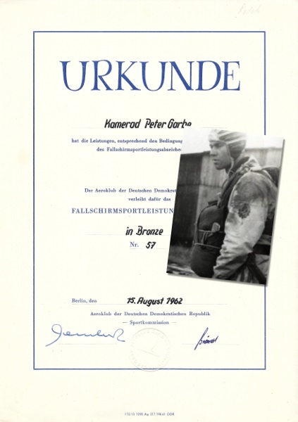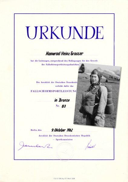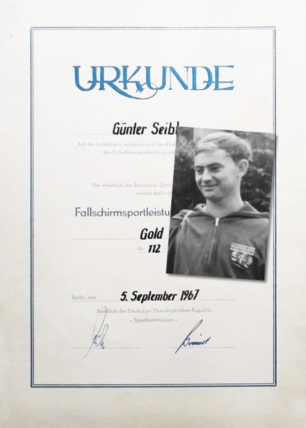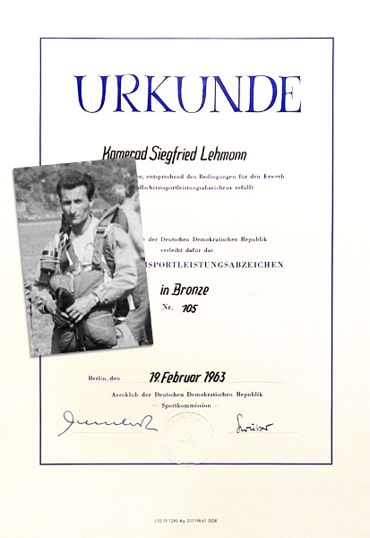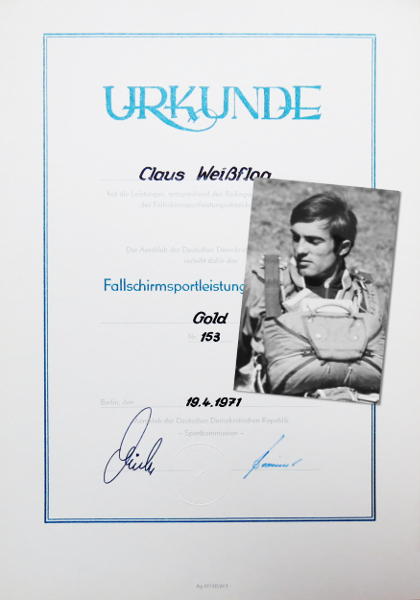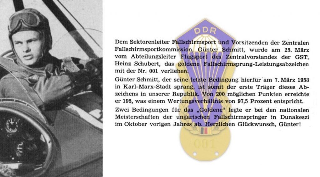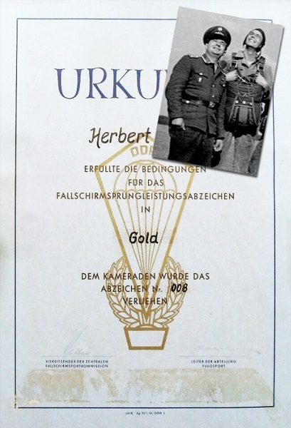 Bild 18 – Träger des goldenen Fallschirmsprung-Leistungsabzeichens mit der Nummer 001 wurde der Berliner Günter Schmitt.
