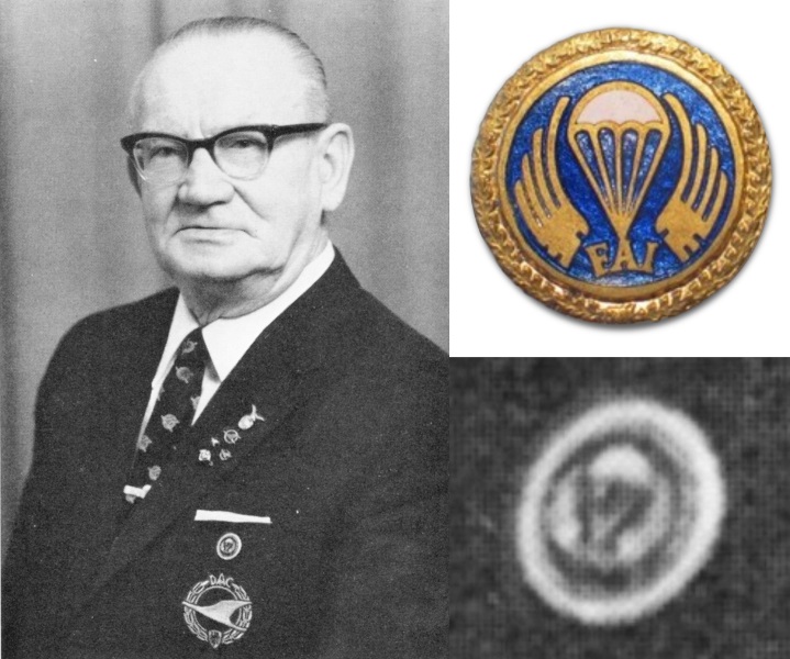 Bild 10 – Das Fallschirmsprungleistungsabzeichen in Silber in seiner ersten Form, Vorder- und Rückseite. Der Träger war Vinzent Przybycin aus Karl-Marx-Stadt,